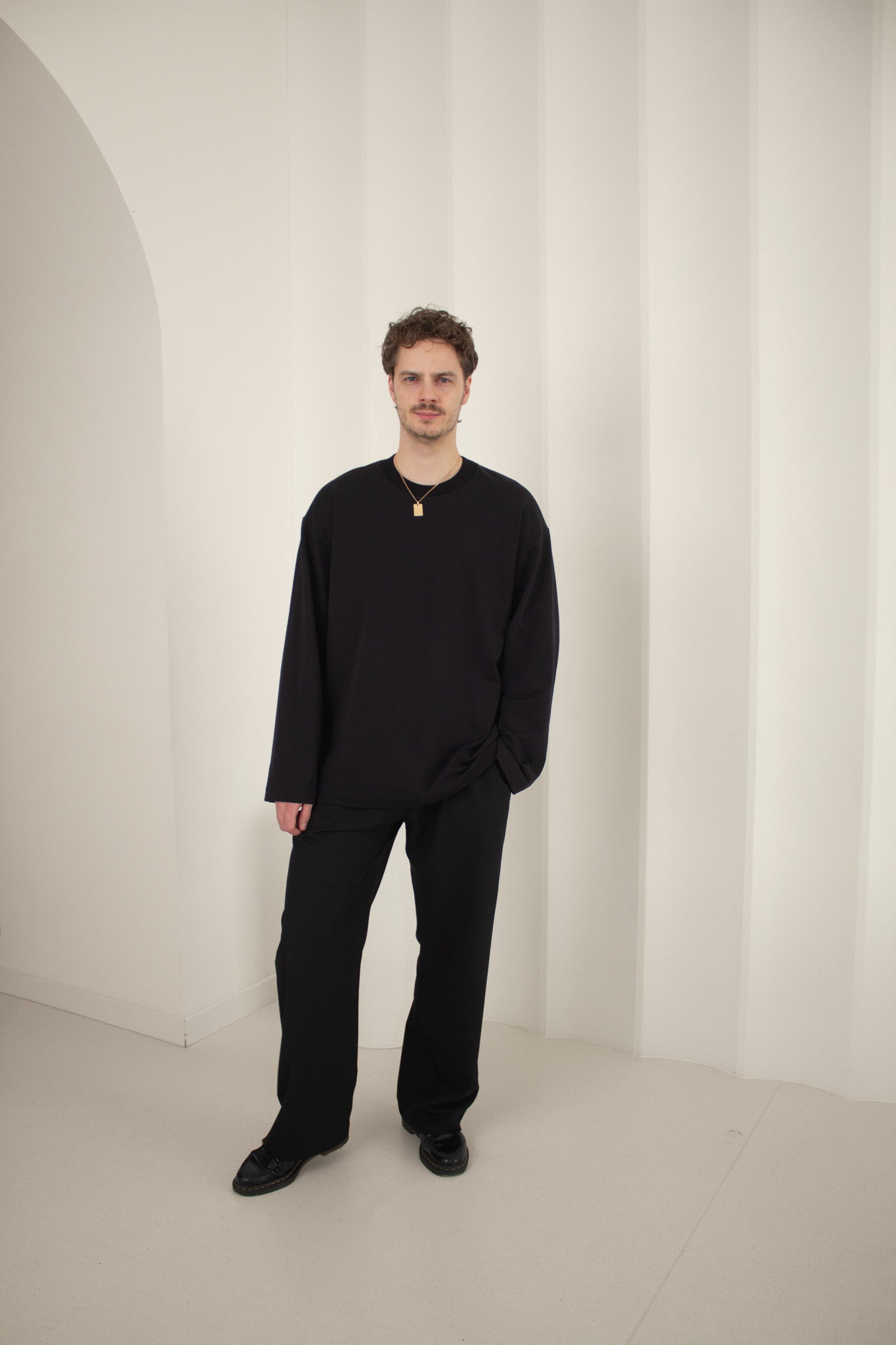 Tvarūs unisex marškinėliai ilgomis rankovėmis iš standžios medvilnės | Dūna