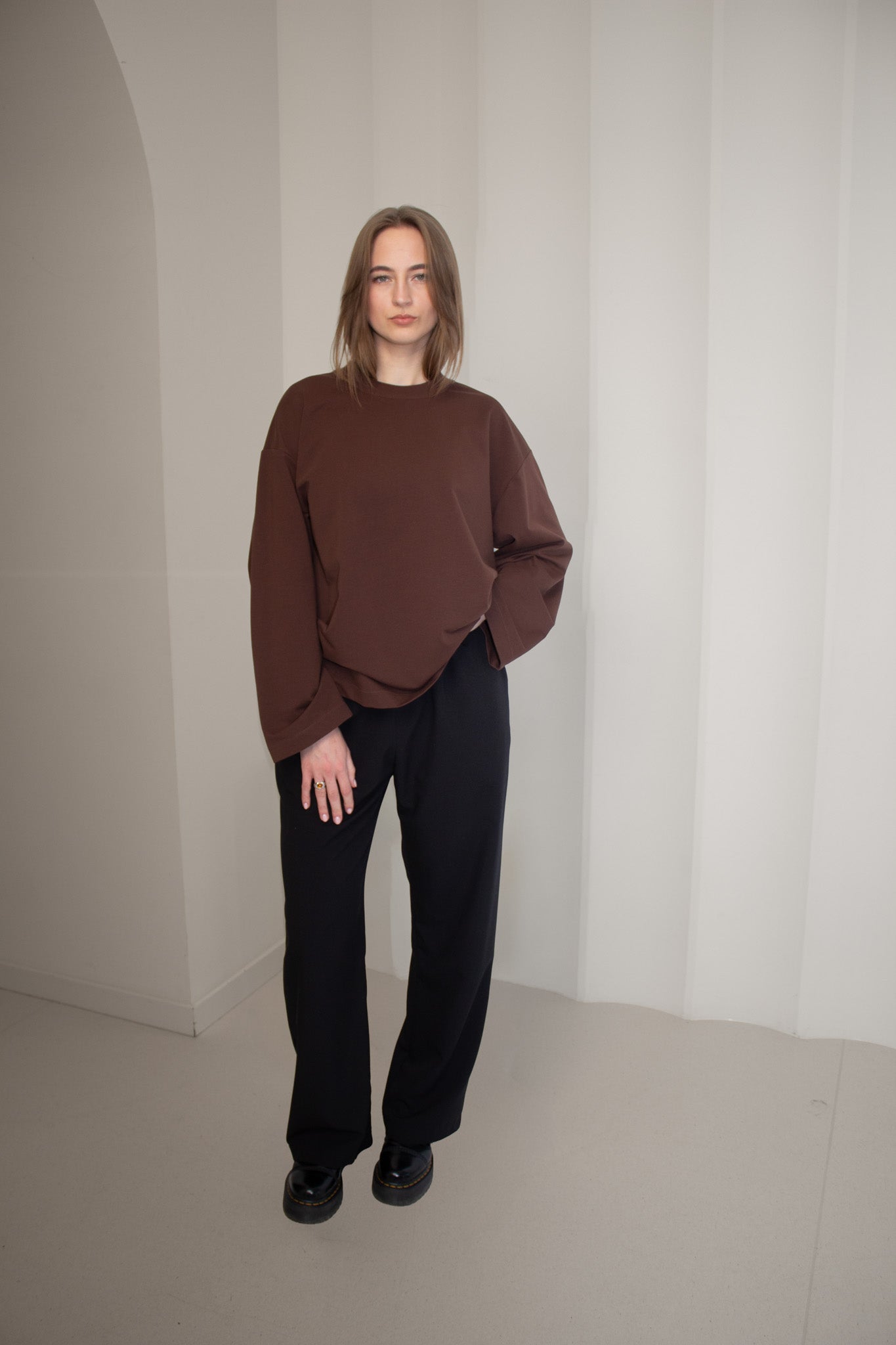 Marškinėlius kūriau sau – o man įtikti nelengva :) Todėl viskas apgalvota iki smulkmenų: patogus oversize kirpimas, neįpareigojantis dizainas, ir galimybė pritaikyti ilgį pagal save.