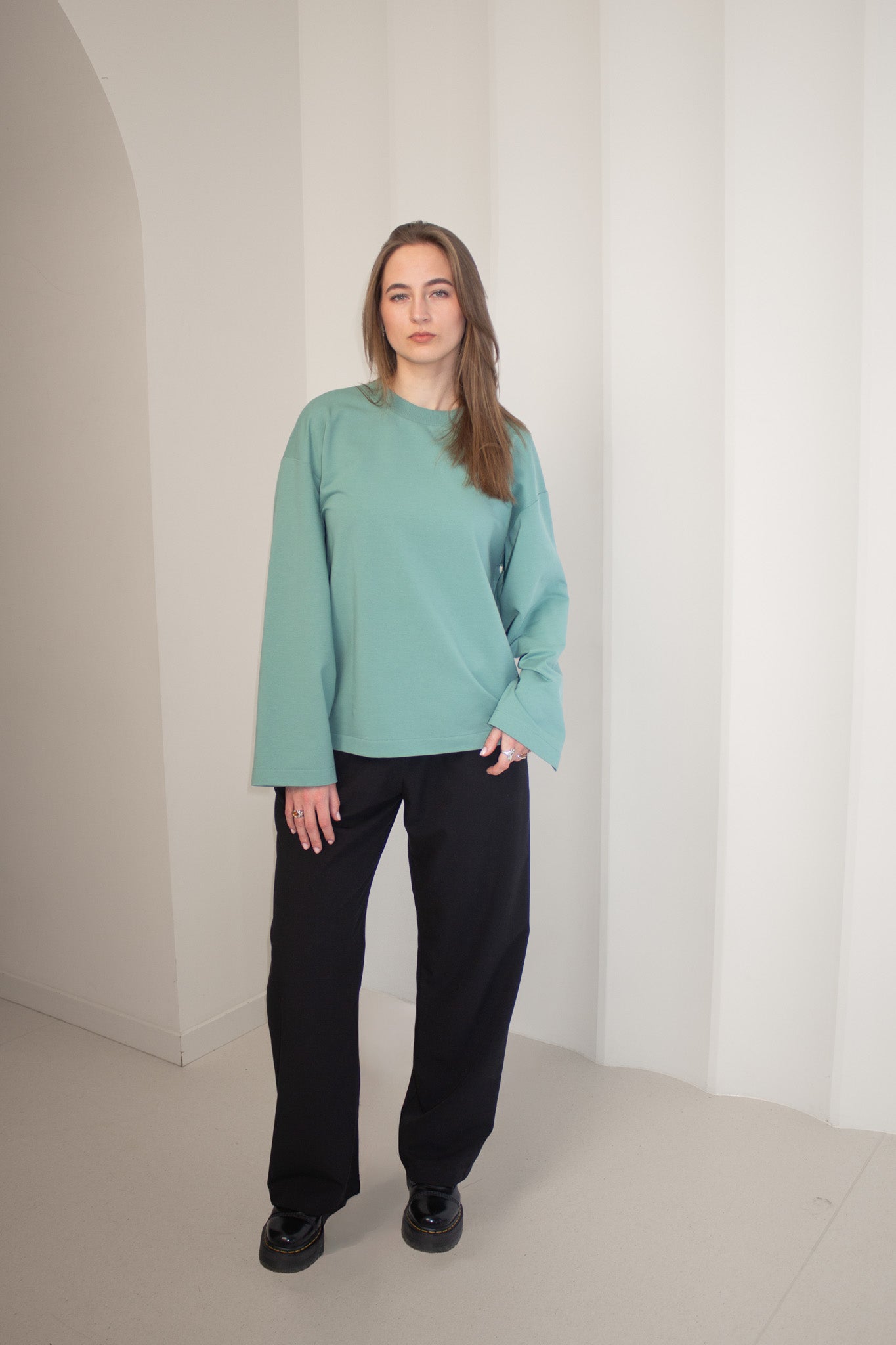 Šie tvarūs unisex marškinėliai ilgomis rankovėmis, pasiūti iš standžios medvilnės, gal ir neišgelbės pasaulio, bet tikrai padės išlaisvinti tavo spintą nuo greitosios mados ir trumpaamžių drabužių.